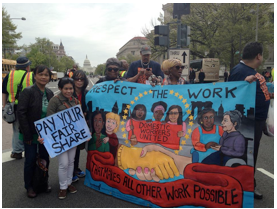 These campaigns aren’t easy to win because domestic workers are isolated and largely invisible. By partnering with senior citizen and disability advocates in a coalition called Caring Across Generations, domestic workers can operate within the four arenas of power that Ai-Jen identifies as necessary for success: political power, the power of the personal story, disruptive power (over the status quo) and the power of consumers and the market.