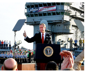 But by the time we figured out we’d been ass-raped by Colin Powell, we were shoulder deep in Iraq, Baghdad was burning, Iraq’s army had thrown down their weapons and taken off their uniforms and had melted into the population, Saddam had vanished and his sons were dead, and the President of the United States had already declared victory from the deck of an American aircraft carrier.