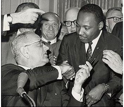 Despite extreme opposition, especially from LBJ’s former southern congressional allies, the former senator from Texas secured the bill’s passage. He signed it into law on July 2, 1964, surrounded by MLK, Whitney Young and a multi-racial group of civil rights activists.