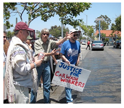 Now comes another victory for the car wash and its workers (photo). Just this summer the City of Santa Monica chose Bonus to wash the city’s vehicles. This is not a huge contract, but it is significant. It demonstrates that a city can choose to contract for services with a business that pays its workers a decent wage and treats them with respect.