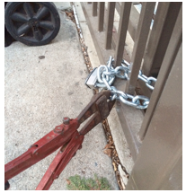 The proper authorities are looking into the unauthorized chaining and padlocking of private property, leased by the City of LA.