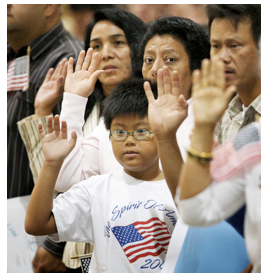 They had entered the building as immigrants. They exited into the bright sunlight as full-fledged citizens.