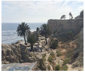 GELFAND’S WORLD-You go to the edge of a cliff and look out towards where the ocean ought to be. But instead of the waves approaching a beach, there is a section of broken off land, containing an old paved street hanging at a crazy angle. It's where cliff top houses used to be until a 1929 landslide moved everything down to the water and turned everything on its side. It's what the San Pedro locals call Sunken City, and what the police and community prosecutors want to close off from the public.