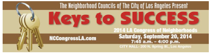 I am happy to say I don’t think it will happen in this case. The annual Neighborhood Congress will be held at City Hall, Saturday, September 20. Under the Chairmanship of Cindy Cleghorn (Sunland Tujunga Neighborhood Council) and her hard working committee, this year’s Congress promises to inspire, educate and give the delegates a renewed sense of commitment to the City and their individual neighborhoods.