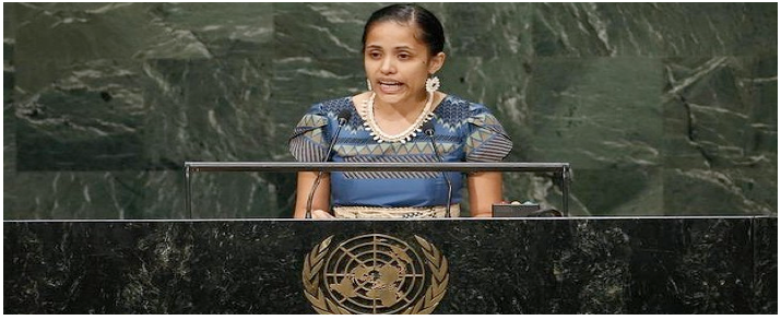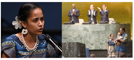 The poem was written and performed by Kathy Jetnil-Kijiner, a 26-year-old native of the Marshall Islands. After her recitation in front of 120 heads of state, her daughter and husband joined her on stage, to a standing ovation. An official U.N. Twitter account said many world leaders were moved to tears, evoking memories of a stirring speech from the Philippines representative Yeb Saño during the last major U.N. meeting on climate change, held just days after Typhoon Haiyan.