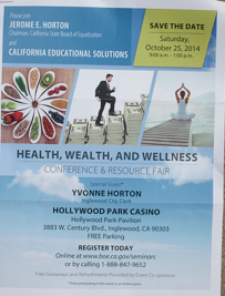 INSIDE INGLEWOOD-Last week, California State Board of Equalization (BoE) Chair Jerome Horton used the state agency’s envelopes and postage to mail out a flyer to Inglewood residents that promotes an event at which he will be featured. The flyer also announced that his wife–Inglewood city clerk Yvonne Horton–will be a “special guest.”