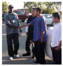 JDP representatives often go into schools, or community or church clubs to meet with those who can gain the most from participation in the program (frequently school or other counsellors refer young men whom they recognize would greatly benefit from the one-on-one “face time” they would receive). The two organizations with which MCSP works the most are the Stockton Peacekeepers and Lodi GRIP (Gang Reduction Intervention Program). Participants learn about choices, decisions, and consequences and build on that knowledge.