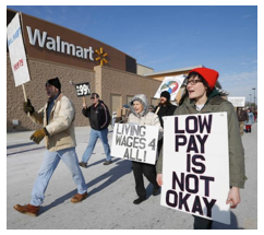 Let me re-introduce you to WalMart before I offer more details about the protests. Sam Walton, the founder, years ago was quoted as saying, “I pay low wages. I can take advantage of that. We’re going to be successful, but the basis is a very low-wage, low-benefit model of employment.” Wow! Well, he certainly put it out there way back then.