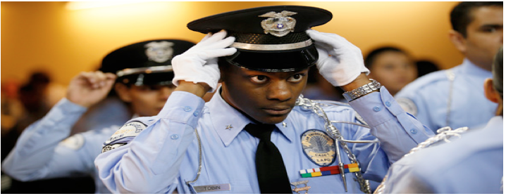 “It’s not the person that fills the uniform, it’s what the uniform does to the person,” said Kim McGill, an organizer for the Youth Justice Coalition. “Blue is the new white.”