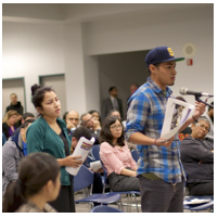 Concerned enough to take the bold step of speaking up at the meeting, students Irwin Plata and Stephanie Olwen (pictured at top), both talked about the importance of culture to Latino youth like themselves, a group whose aspirations are wildly underrepresented in the planning process.