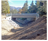 The city of La Cañada Flintridge is in north Los Angeles County in the San Gabriel Mountains foothills. Located in the heart of the city is the Jessen Drive Bridge, built in 1940 and reconstructed in 1961. The original bridge was a timber “A” frame truss bridge with steel rod hangers and tension ties, a timber plank deck with an asphalt concrete overlay on timber stringers which was supported by steel pile abutments. It spanned 41 feet and was 27 feet wide with a 4 foot wide sidewalk and a 23 foot roadway, providing essential access to neighborhood homes, an elementary school and a primary thoroughfare for main city services.
