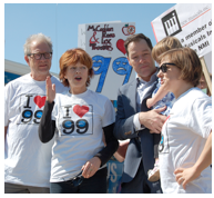 Organized by the activist group I Love 99 and led by TV and theater stars Frances Fisher, French Stewart and Steppenwolf Theatre co-founder Jeff Perry, the marchers stretched for blocks along Lankershim Boulevard, waving placards and chanting, “Hey, hey, ho, ho — 99, it can not go” and “We want change — Not this change.”