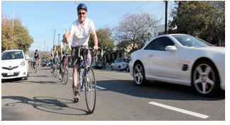 “Lest you bikers, er, people on bikers, think that the LADOT is stuck in outdated practices, there are some changes in the Year Three bike lane projects.” O’Serviss went on to explain that for 2014’s Year Two bikeway project list, LADOT held a series of closed meetings, with the bicycling public neither notified, invited, nor welcomed – before failing to implement any of the Year Two list. “In 2015, we’re skipping the unpopular closed-door meetings. In fact, we’re not even going to meet at all. Nor will we release the names of the streets. Be assured, though, that there is a list.”