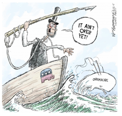 HEALTHCARE POLITICS-Republicans have been cornered by a president they had vowed to drive from office. Obamacare, an imperfect but badly needed revolution in health care, is, as President Barack Obama said, “here to stay.” Tens of millions of Americans will keep health insurance long denied them, and millions more will obtain such policies in the future.
