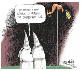 The first of course is that the Confederate flag and Donald Trump are recognized by a large number of people as being in some ways evil. Trump's evil is trite and trivial compared to the Confederate Battle flag, but it is still there. It encompasses racism, pomposity, not a little public sadism, and now even more racism. This is small stuff if you compare it to the symbol of slavery, but Trump's behavior is contemporary.