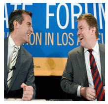 James (photo left with Mayor Garcetti) said he wound up with this assignment because 1) He interacts almost on a daily basis with all of the City Departments involved in facilitating movie and TV production 2) His background as an Entertainment Lawyer and radio host, prior to becoming head of Public Works gives him the ability to know who is doing what in the entertainment industry