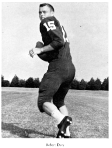 Montgomery then told me that he had once interviewed Abner Haynes, an outstanding running back with the Chargers and other NFL teams in the 1960s who had been teammates with Duty at North Texas State. “Abner Haynes said that Robert Duty was the best quarterback he had ever played with, bar none,” Jim said.