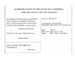 As a result, the courts compelled the City Council to fully rescind the Hollywood Community Plan Update, including the attached ordinances that increased building densities and heights in Hollywood. Under court order, the City Council also resuscitated the previous Hollywood Community Plan, restored the zoning laws it had rescinded, and agreed to pay nearly $2 million in legal bills to the community groups and law firms that successfully challenged the Hollywood Community Plan Update.