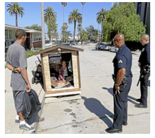 He then submitted a motion through the Public Works and the Gang Reduction and Homeless committees of the Los Angeles City Council to the City Attorney’s office to “report on the legality of the placement of such structures in both the public right-of-way and on private property and recommend removal protocol.”