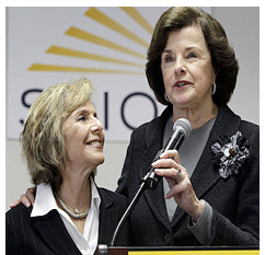 Diane Feinstein and Barbara Boxer (photo left) were the first women ever to be U.S. Senators from the same state at the same time. New Hampshire and Washington now can also make that claim.