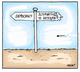 To clarify: by "democracy" I don't mean something as simplistic as "majority rule", but something like an ongoing, shifting dialogue among engaged citizens, involving many more than just two points of view, and not just confined to election campaigns -- elected officials can be held to account at any time. Democracy, as I see it, can't be reduced to a series of independent political "transactions".{module [1177]}