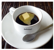 As far as what to take in your coffee, most people think of their morning cup coming with cream and sugar. With the well known damaging effects of sugar and so much of the milk laced with hormones, many people are steering away from cream and sugar. For a while there soy was all the rage until people got wise to the potential unhealthy effects of consuming too much soy. In place of the milk or soy people have gotten wise to the benefits of butter to spruce up their morning coffee.