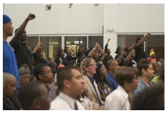 It was a claim many of the elders in the community might have disputed. Some I spoke with after the meeting were shaking their heads over the fact that they found themselves confronting so many of the very same issues they had gone up against as activists in their youth, that young men were still dying at the hands of police and there was still no accountability. And Reverend Sauls, an important advocate for the South LA community on a wide range of issues since his arrival at Holman in 2012, had been the one to moderate a meeting between the Black Lives Matter advocates and the mayor at Holman this past July.
