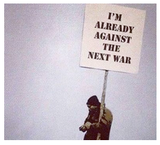 He considers "all the fuel, the ammo and missiles and grenades. Maybe you start to see a lot of people making a lot of money on huge amounts of human suffering....Maybe your heart breaks a little every time some asshole brags about a 'successful' drone strike."