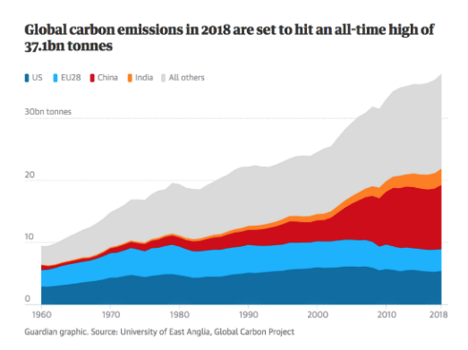 CommentsBE GREEN--As world leaders are meeting at the COP24 in Poland to discuss how to achieve goals outlined in the 2015 Paris climate agreement, scientists and activists are raising alarm about "brutal" new research published by the Global Carbon Project on Wednesday which offers the international community a "reality check" by showing that carbon emissions will hit a record high this year.