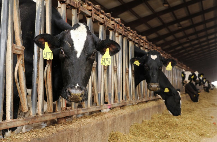 Cows, which are a major source of methane, feed at a dairy farm in Fresno. REUTERS/Nathan Frandino