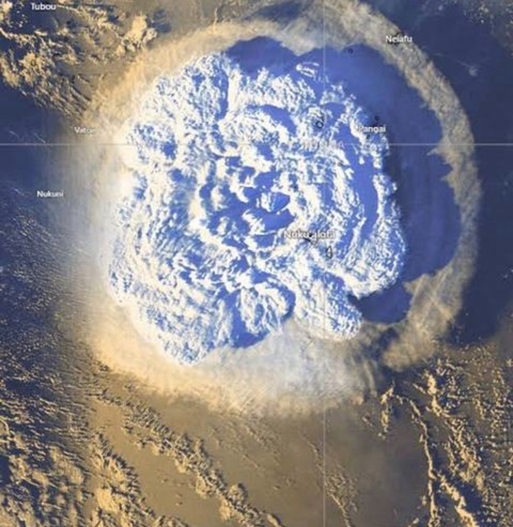 CommentsCLIMATE WATCH - A massive eruption in an undersea volcano, the Hunga Tonga-Hunga Ha'apai, 40 miles north of the South Pacific island of Tongatapu on Saturday caused a low-level tsunami and flooding on the island, the most populous in the Tonga archipelago.