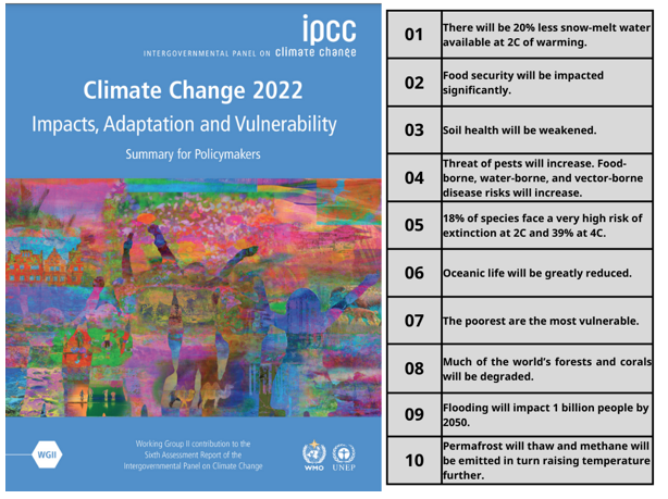 The latest IPCC report lays out what failure to achieve this rapid transition will inflict on our children's' futures. It is the final report that will be published while we still have time to act. These are just some of the take-aways from the report: