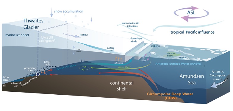 measuring the speed, thickness, and structure of ice. Dr. Scambos (University of Colorado/Boulder) recently penned an article: Ice World: Antarctica’s Riskiest Glacier is Under Assault From Below and Losing Its Grip. The Conversation, June 7, 2022.