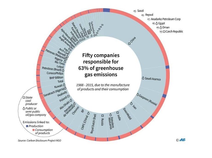 The UK’s Guardian newspaper answered this question several years ago. The paper determined that the historical responsibility for CO2 emissions rests with 100 major energy companies. Since the mid-1980s, these businesses have generated 71% of the emissions responsible for the worsening climate emergency. Those at the helm of these major energy corporations are responsible for climate change. In the words of The Guardian, “these are the real climate culprits”