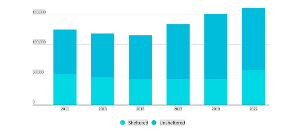 As good as these studies are in documenting the increasing numbers of unhoused people, they do not adequately examine the causes of the growth trends they describe. Like the country as a whole, in California homelessness has steadily increased since 2014, when the Great Recession finally ended.