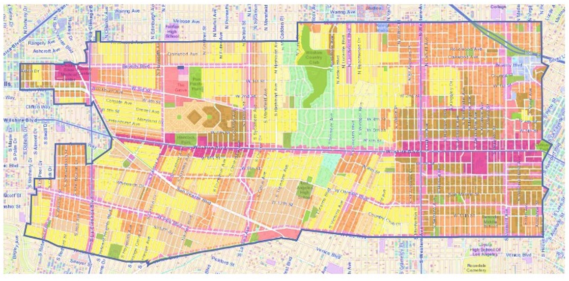 I live in the centrally located 21 year old Wilshire Plan area, shown here.