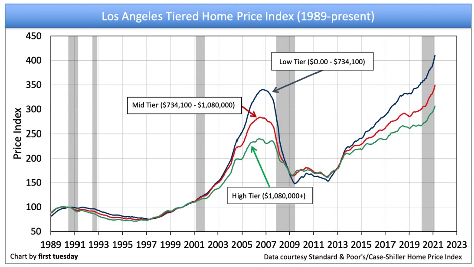 Third, gentrification and mansionization has proceeded with few constraints in the Los Angeles region for over two decades. The only effective protection is an Historical Preservation Overlay Zone (HPOZ). Unfortunately, they are difficult to obtain and only apply to a small percentage of residential neighborhoods. As a result, my estimate is that 40,000 houses have been demolished in Los Angeles since the year 2000, nearly all replaced with McMansions. These McMansions house the same number of people, even though they are three times the size and price of the homes they supplanted.