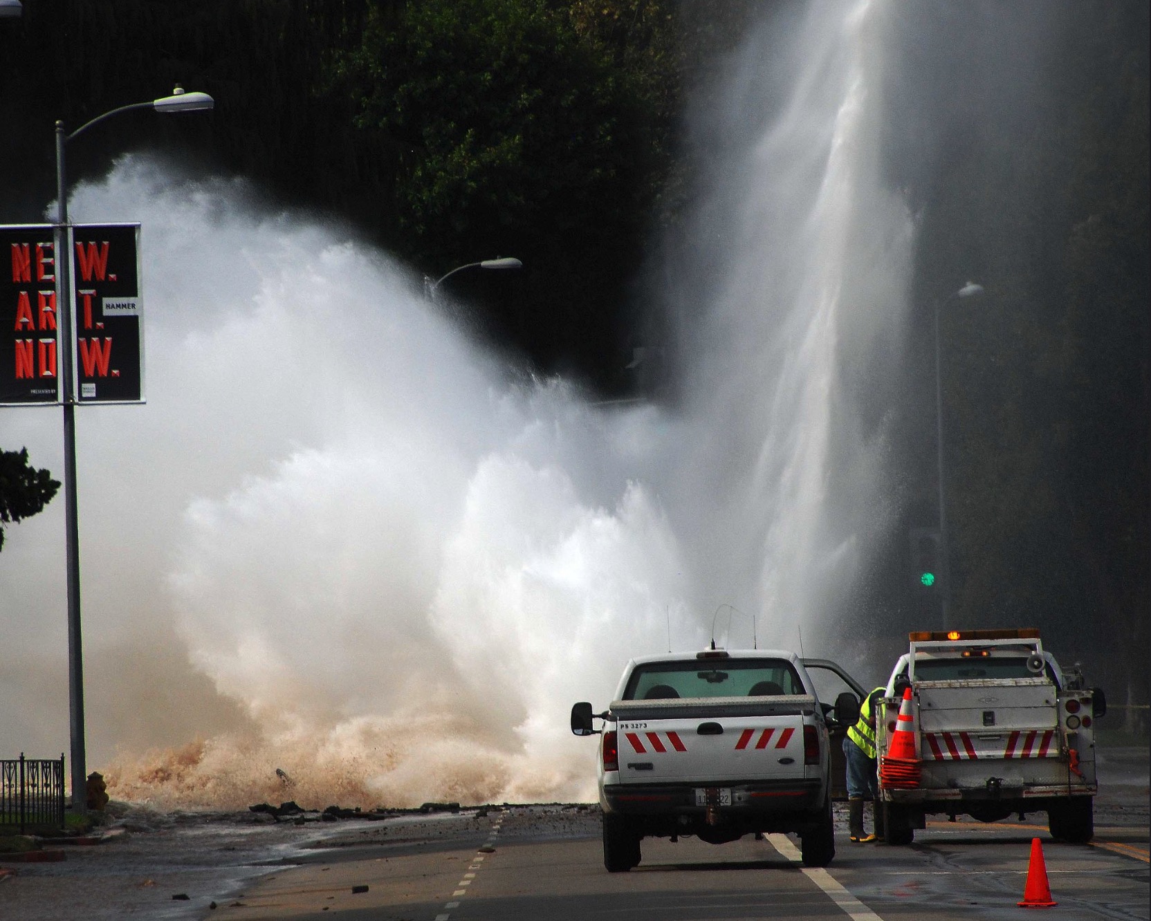 Burst water main on Sunset, near UCLA.