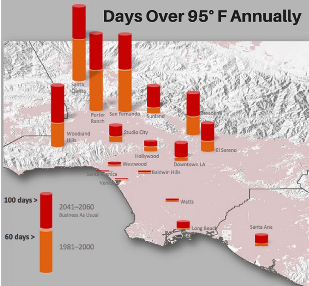 Nevertheless, we know what aspects of climate change should be addressed in the General Plan’s Environmental Element. For example, climate change made January’s firestorms 35 percent more destructive. LA City Planning’s CVA report also presents other examples of local climate impacts: