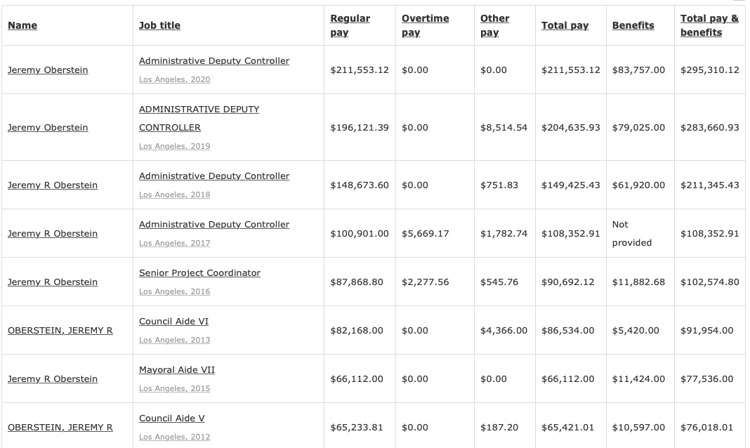 When I wrote to David Tristan of the LA City Ethics Commission, about Jeremy Oberstein, I expected to hear back in a few days, like with Herb Wesson's form 700. But he fired off a response to my query immediately, "What was Jeremy Oberstein's last day of service?"