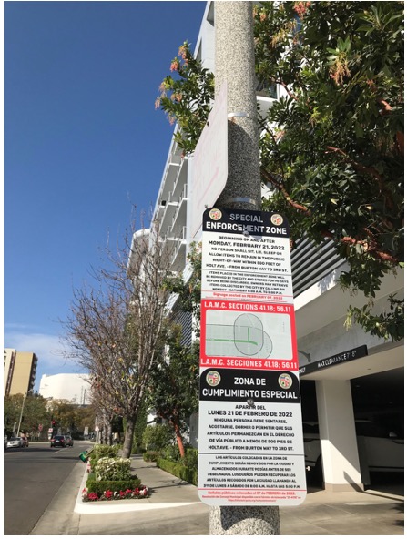 I asked, "did Koretz put up 41.18 signs?" He explained that using the no pedestrian sign, a concept possibly developed in an anti-homeless laboratory in Venice, could be highly effective without OD'ing on the bad optics of a 41.18 frenzy, summarized thusly: "You can't be here, here or here. Here, it's ok."