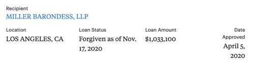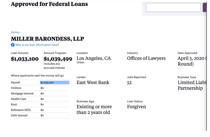 The PPP search bar from Propublica that I referenced and posted in 2021, was good for a few drinks and revealed that the law firm of Skip Miller was forgiven over a million dollars: