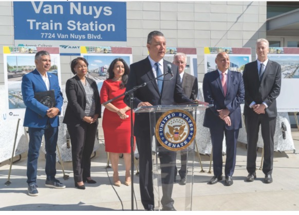 Sen. Alex Padilla was speaking at an event on Tuesday, April 22, 2022. Rep. Tony Cardenas was there as was, Metro CEO Stephanie Wiggins. And the City Council President, Nury Martinez with her trusted henchman, Council Member and Metro Board Member Paul Krekorian was right by her side, soaking up the Senatorial juice. It’s more of a boost than a typical Red Bull, but less than a triple Johnny Walker Red on the rocks. It was a beautiful day.