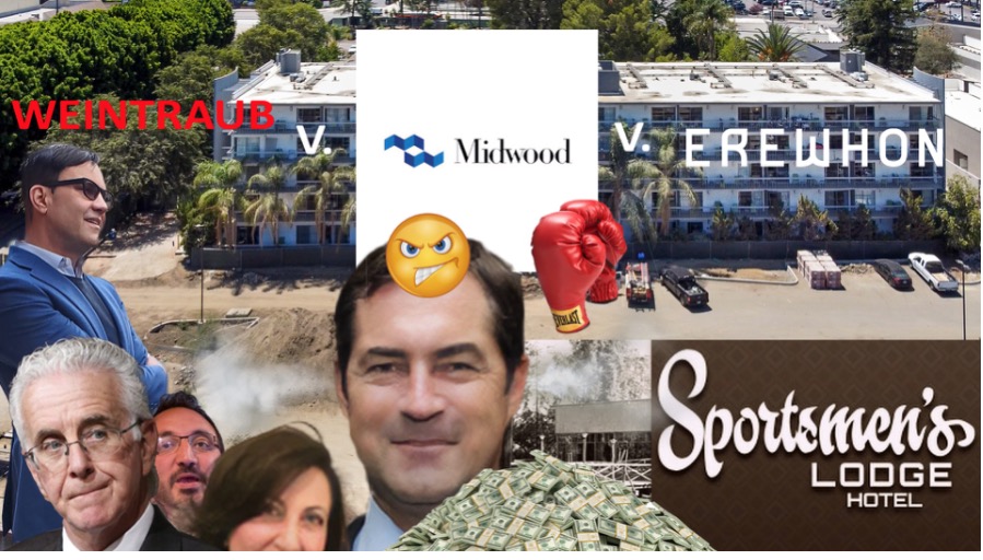 Richard Weintraub, who ran the Sportsmen's Lodge hotel into the ground while gathering the entitlements from his crooked cronies at city hall for the River adjacent Landing, allegedly stepped off, so Midwood, a New York company could knock down the old event center and put up a parking lot... and a high end luxury mall.