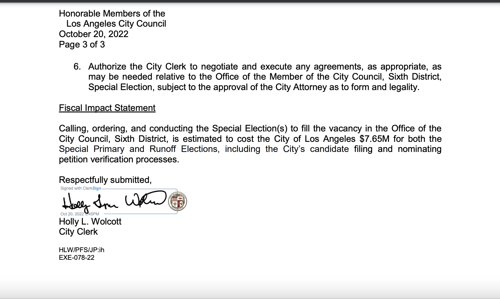 When the city was approving a CD12 special election to accommodate, Mitch Englander’s sudden big exciting life decision to join Oakview with Irving Azoff and continue to deliver for investors… / get indicted, and go to jail, the cost was estimated to be a dainty $2.4M!