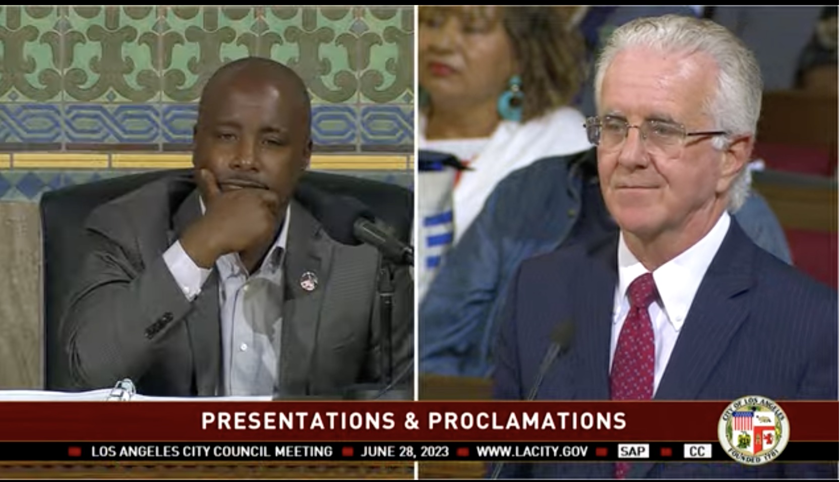 This was an inside joke among Marqueece Harris-Dawson and Heather Hutt who cheered on the little white council president as he trotted out the date on which the city’s longest-serving mayor, Tom Bradley was sworn in, July 1, 1973.