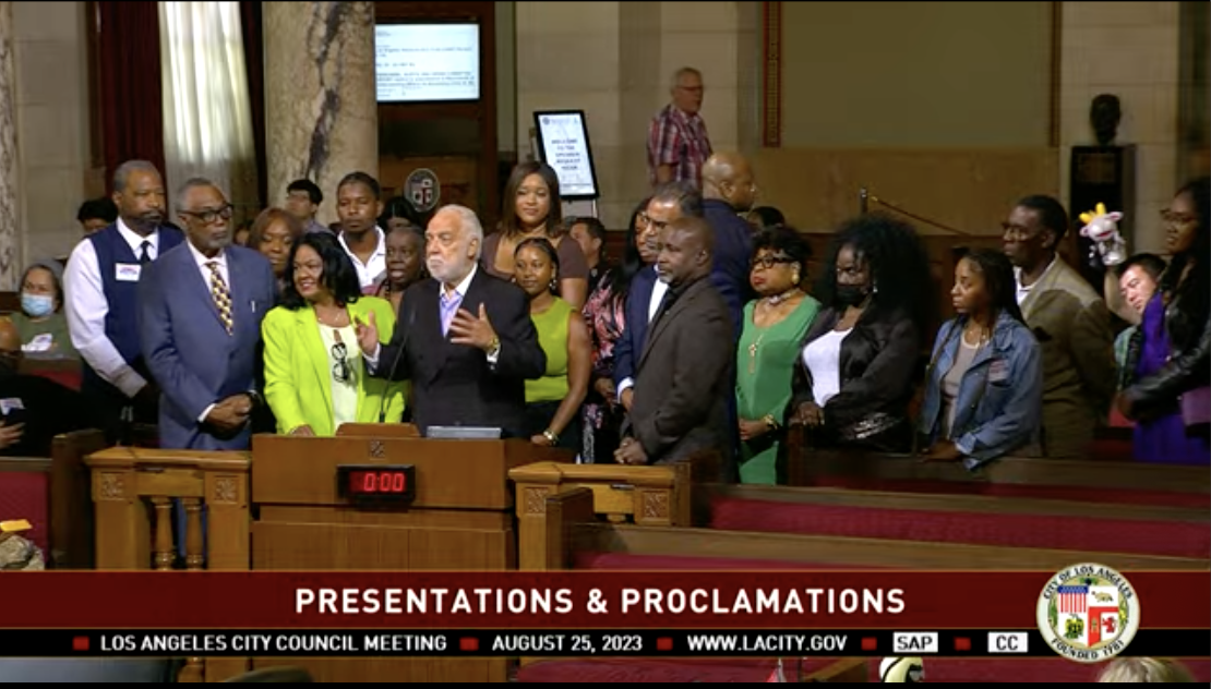Danny Bakewell, who charges municipalities hundreds of thousands to advertise on the city streets during TASTE OF SOUL honored in Council Chambers.