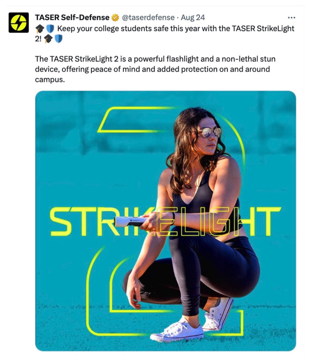 The current campaign underway by @Taserdefense a subsidiary of Axon formerly Taser International is aimed at cute college girls.
