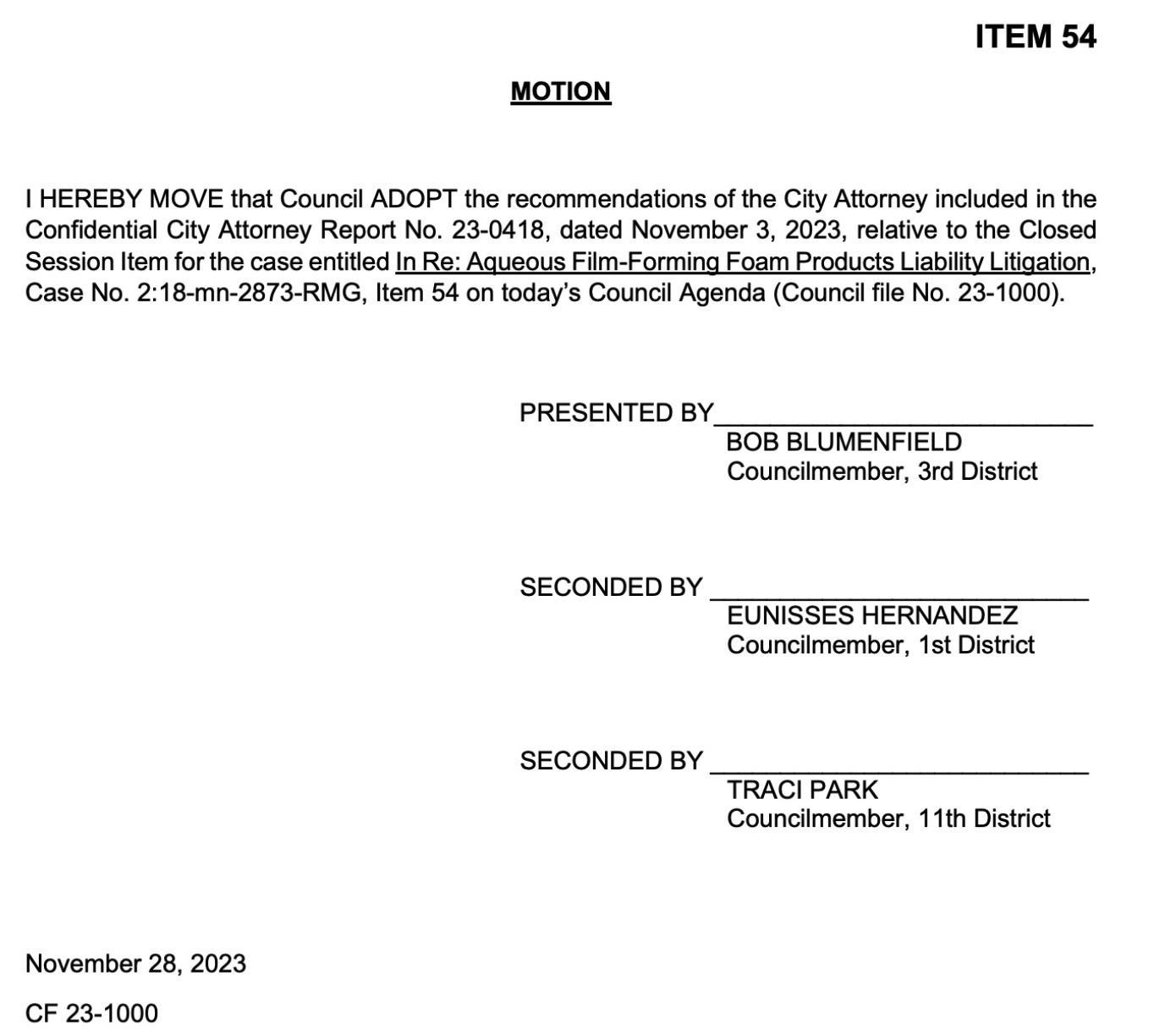 City Council's Secret Motion about PFAS, a week after Harvard Westlake's River Plan Project approval.