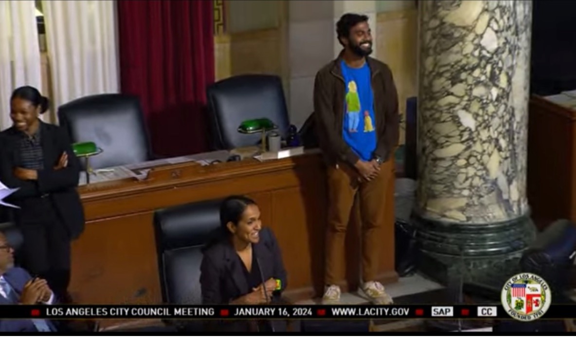 Nithya Raman of CD4 proudly introduced her brother from San Francisco.